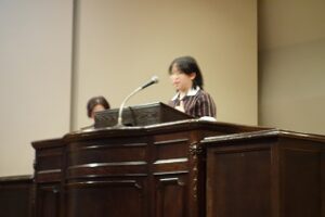 礼拝後の歓迎会では、ファーンスクールの生徒たちが流暢な日本語で挨拶をし、本校の生徒会会長も歓迎の言葉を述べました。また、コーラス部による“It’s a small world”、男子生徒の有志を交えて「レ・ミゼラブル」の劇中歌“民衆の歌”では、未来への希望や仲間と力を合わせる思いを込めました。元気に歌声を披露し、会場は温かい雰囲気に包まれました。