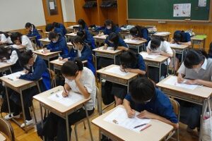 スペコンは、英語を使いこなす上で基本となる単語力の向上を目的とした、英和の伝統的なイベントです。100問のペーパーテスト形式で行われ、生徒たちは夏休みの間に培った語彙力を試します。