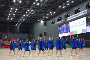 体育祭の応援団は、選手宣誓、応援合戦のパフォーマンス、エール交換など、学年を超えて各色を1つにまとめて、体育祭成功には欠かせない重要な役割です。