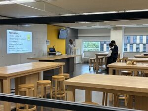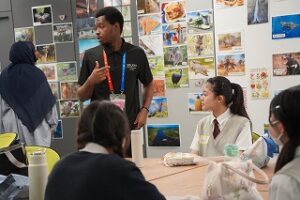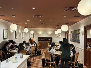Tokyo Global Gatewayでは8人グループに1人ついてくれるイングリッシュスピーカーのサポートを受けながら、午前中は学習テーマに基づいたグループワーク、午後は空港や病院、レストラン、ホテルなどの場面で使用する英会話を体験しました。これまで学習してきた英語を使ってコミュニケーションをとろうとする積極的な姿勢が見られました。今後の学習意欲と国際的な視野を広げる機会となりました。