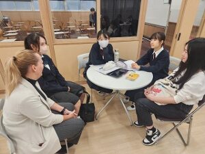 グローバルラウンジに参加した生徒は学年もさまざまで、英語を通して生徒同士の交流も深まりました。普段は関わる機会の少ない他学年の生徒とも会話でき、英語という共通のツールを介して新たなつながりを感じることができました。