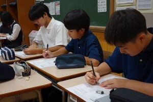 生徒たちは、「話題のキャラクター」「人気の遊び」「SNS」「MBTI診断」「生成AI」等、最近の流行がなぜ人を惹きつけるのかを掘り下げ、スライドを効果的に用いて発表しました。スライドのデザインや話し方等、各班が工夫を凝らし、聞き手側も評価シートで採点しながら、興味深く学びました。