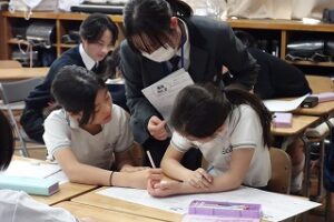 お兄さん・お姉さんである高校生を前に、小学生たちは最初は少し緊張した様子でしたが、授業が進むにつれて、コミュニケーションが盛んになっていきました。