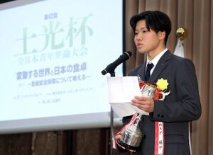全国から選りすぐられた弁士たちが集う中、三和さんは「経済安全保障から考える我が国の食糧安全保障戦略」をテーマに堂々とした弁論を披露。自身の考えを熱く、かつ論理的に訴えました。