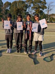 8校、70ぺア参加で行われた個人戦で、3年生の松尾・桑田ペアが優勝、徳竹・小川ペアが第3位に輝きました。