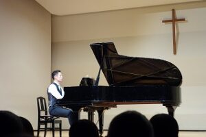 「2026年1月22日の木曜日、ブリテンホールにて「歌詞のない音楽会」と冠したピアノ曲の音楽会が開催されました。この音楽会は高3進学準備講座の一環として、英語科教諭の官野先生が主催されたもので、高校3年生13名、教員3名が参加しました。プログラムには各奏者による楽曲解説だけでなく、ブリテンホールでの最後の演奏に向けた意気込みや熱い思いが込められていました。