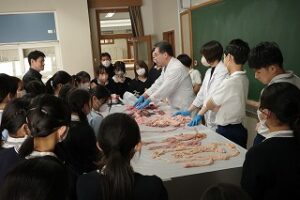 2月18日、青山学院横浜英和小学校6年生が中高理科室に集まり、中高理科教師による「豚の内臓の解剖観察」を行いました。