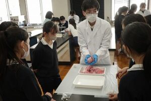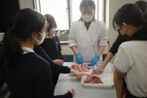 2月18日、青山学院横浜英和小学校6年生が中高理科室に集まり、中高理科教師による「豚の内臓の解剖観察」を行いました。
