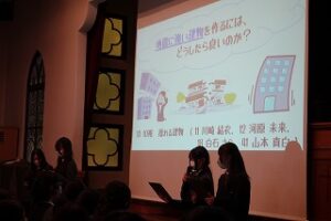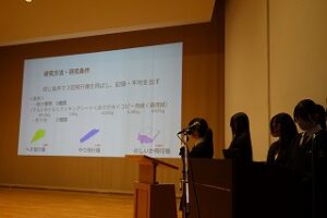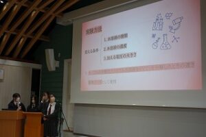 今回は、クラス発表を経て選ばれた代表チームが、その成果を学年全体に向けてプレゼンテーションしました。