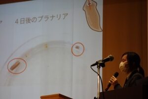 1年生の理科教諭の講評では、実験内容や調査内容に独自性のある視点があり、実験手法においても、条件を厳密に揃えて比較ができた点、発表スライドも文字量やサイズが工夫されており、聴衆を意識した構成もできており、そして積極的に取り組んでいたことに評価が送られました。代表発表者の良かった点は実験結果の見やすさや考察に根拠があることを挙げられました。