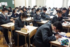 「中学生になって」作文の時間には、これからの抱負を丁寧に綴っていました。