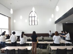 学院宗教主任の伊藤 智先生に「神のための共生」というテーマでお話いただきました。 私たちは、自身の「価値観」や「常識」と異なる人と出会うと、不安や違和感を感じると思います。 ただ、そうした人々との出会いこそが、自分が無意識のうちに作っていた壁を取り除く貴重な機会となり、「平和」や「真の豊かさ」に繫がるものだと思います。 生徒たちが日々の礼拝で聖書にふれているように、保護者にも聖書にふれるよい機会となりました。
