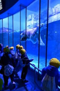 シーパラダイスのアクアミュージアムでは、卒業前の園児たちに向けた特別プログラムのショーを観覧し、イルカの豪快なジャンプに拍手喝采。その後は可愛いペンギンのパレードをみたり、水族館内の様々な海の生き物をみて回ったり、とても楽しい一日を過ごすことが出来ました。