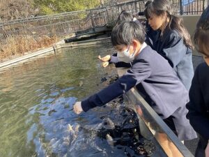 午後は相模川ふれあい科学館で、地域の魚や、毒のある生物を観察しました。特にえさやり体験ではとんでもない勢いで集まってくる魚たちに圧倒されながらも楽しい時間を過ごすことができました。