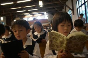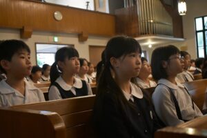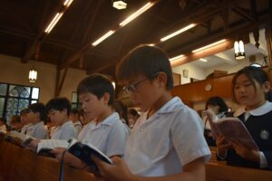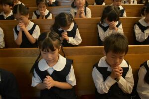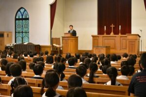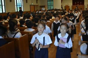 10月1日、後期の始業日を迎えました。全児童が一堂に会して、礼拝堂で後期の始業礼拝を守り、これからの学校生活の上に神様の祝福があるようにお祈りを捧げました。
