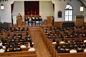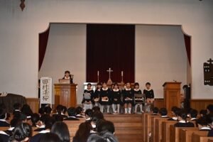 今日、児童会選挙が行われました。来年度の児童会役員を決めるための大切な選挙です。候補者は、全校児童に向けて、未来の英和小学校への希望と夢を、そして、役員になった曉に実行する公約を述べました。皆素晴らしい発表でした。投票する高学年児童は、力のこもった演説に、夢ばかりが大きくなりすぎて実現不可能な公約ではないか?学校のことをしっかり考え、頼れる人なのか?様々な視点から、真剣かつ冷静に聞き入っていました。